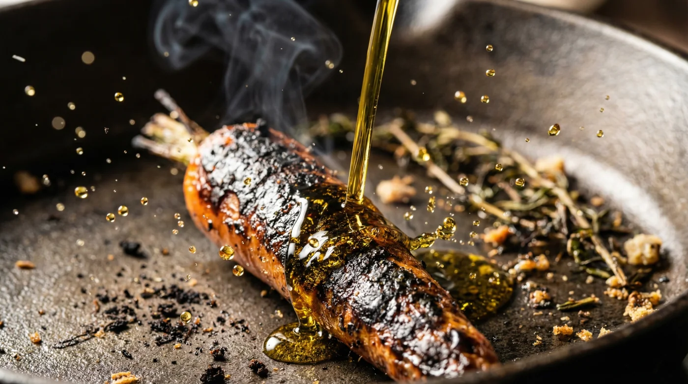 Det är här perspektivet skiftar. Du kan inte trolla bort att maten bränts, men du kan sätta en ögonbindel på tungans receptorer. De tunga, komplexa fettsyrorna i en bra olivolja fungerar som en skyddande filt. De binder sig fysiskt med de beska koldelarna och neutraliserar smaken på ett sätt som varken socker eller salt någonsin kan åstadkomma. Det är inte ett desperat plåster, det är en kemisk omprogrammering av rätten.