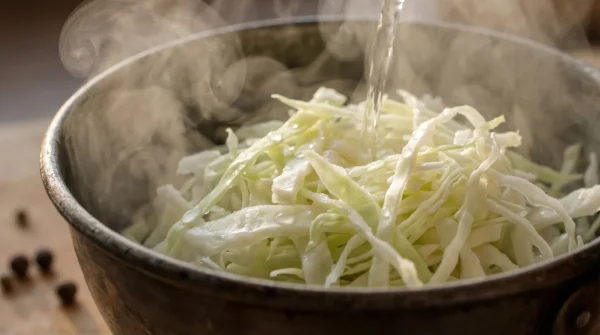 - Färsk vitkål blir snabbt god pizzasallad med lite kokande vatten