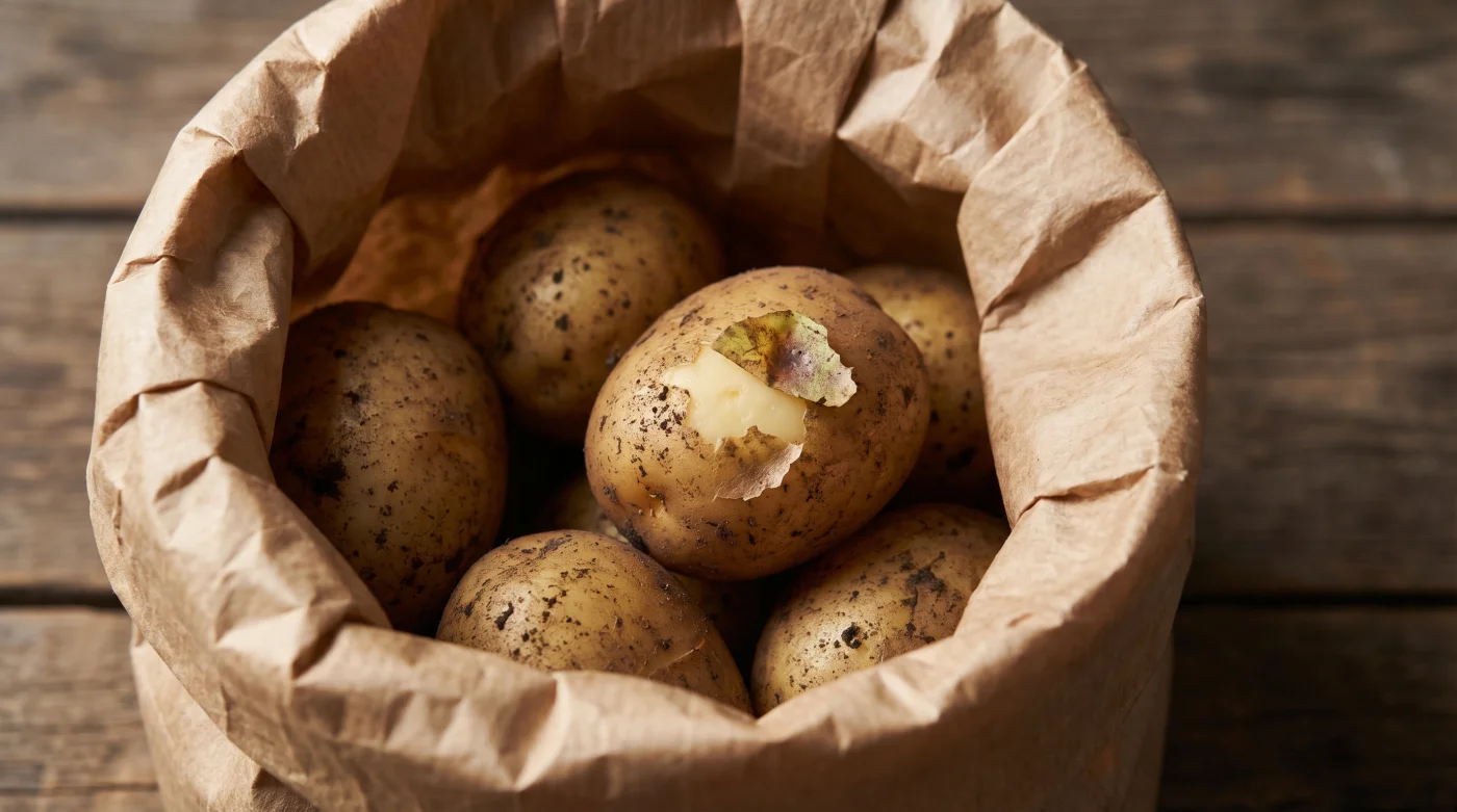 - Andningsförmåga: Använd uteslutande papperspåsar, tygkassar eller flätade korgar. Plast stänger in fukt och påskyndar mögelbildning.