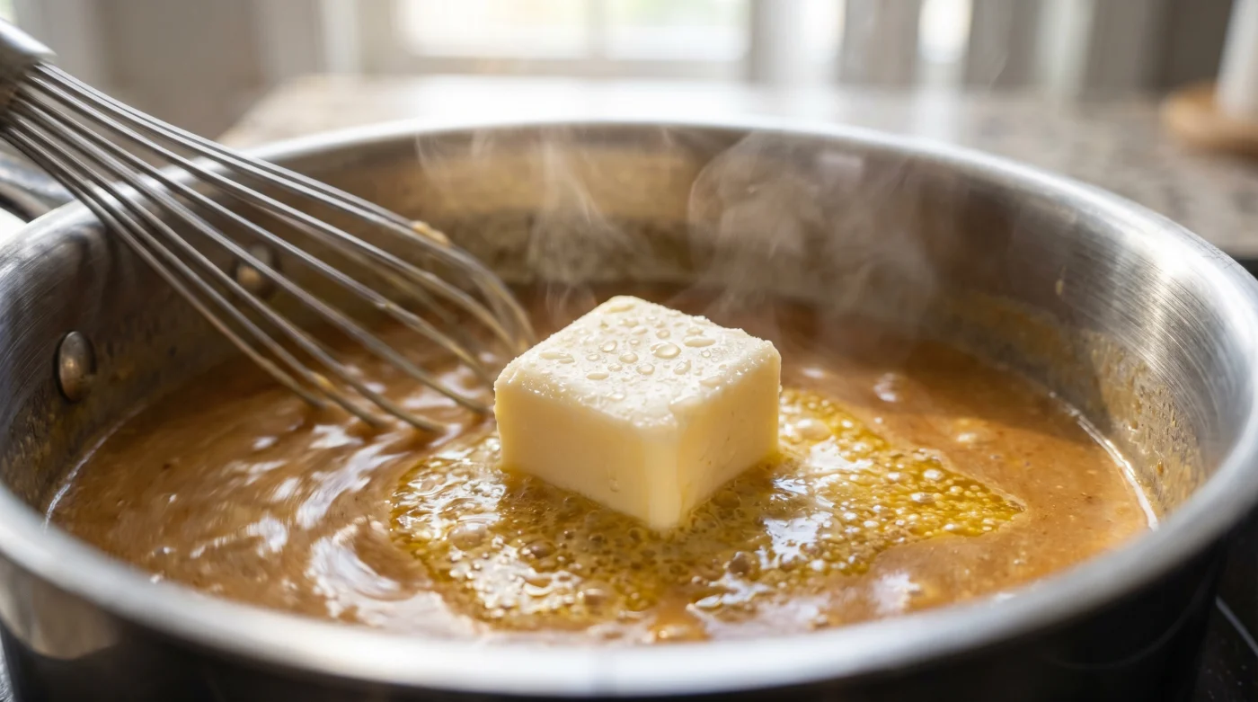 | Grynig gräddsås efter långkok | 1 tsk kylskåpskallt smör på slutet | Ger en silkeslen munkänsla utan att späda ut smaken |