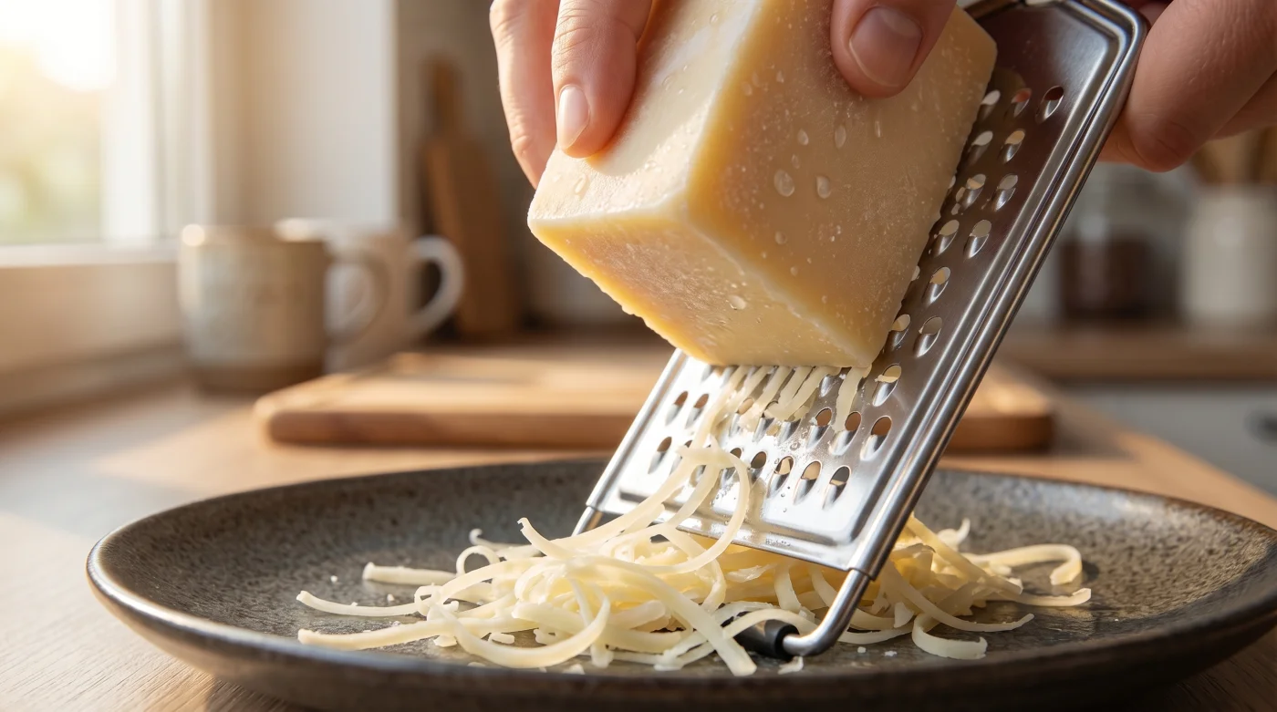 Börja med att mentalt se ostrivningen som middagens absoluta finalsteg, likt att garnera med färska örter. Hacka grönsakerna, koka pastan, duka bordet och gör i ordning allt annat först. Låt rivjärnet ligga helt redo, gärna nyligen spolat i iskallt vatten och snabbt avtorkat. Att kyla ner verktyget minskar friktionen och värmeutvecklingen ytterligare när det väl är dags att agera.