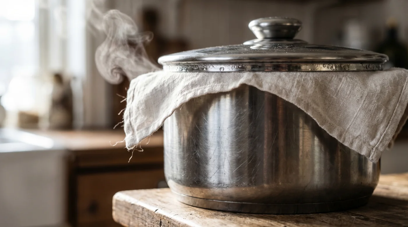 Här sker ett avgörande perspektivskifte i köket. Genom att ignorera förpackningens stela instruktioner och istället spänna en ren kökshandduk stramt under kastrullens lock, förändrar du hela miljön i kärlet. Du går från att passivt hoppas på det bästa, till att aktivt styra och manipulera fuktigheten.