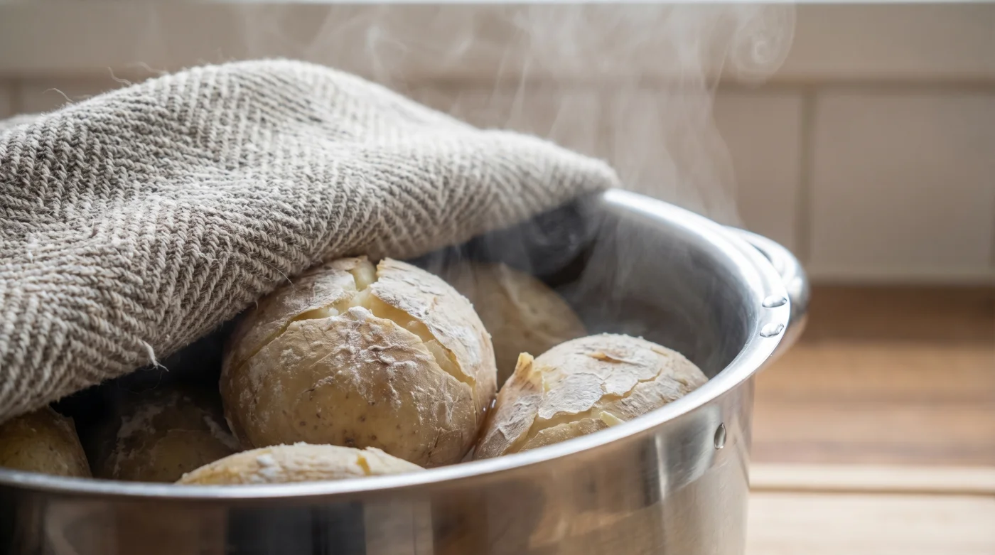 - Varm kokt potatis kräver en handduk för fluffig konsistens