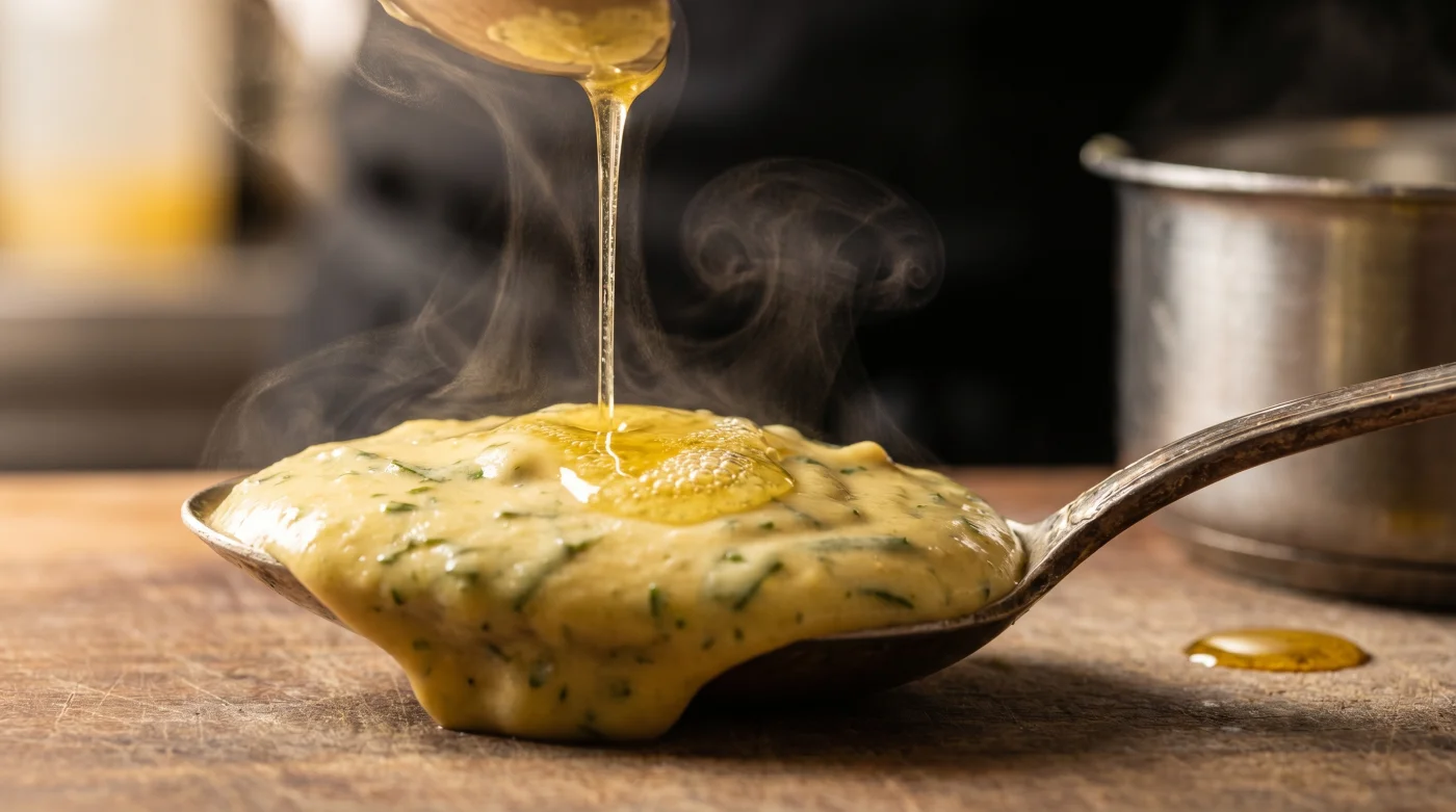 Kokböckerna från förr instruerar oss med en nästan religiös envishet att låta smöret svalna till fingerlöst innan det droppas i äggen. Men att behandla bearnaisesås som en skör porslinsdocka är ett misstag. Tänk på emulsionen som en stressad motorväg. Om du tvingar in kalla eller ljumna bilar i en fil som kräver hög hastighet, uppstår omedelbart köbildning. Fetter binder inte när de tvekar. Värmen vid 68 grader fungerar istället som ett smörjmedel som tvingar fettmolekylerna att omedelbart krossas och omslutas av äggulans lecitin.
