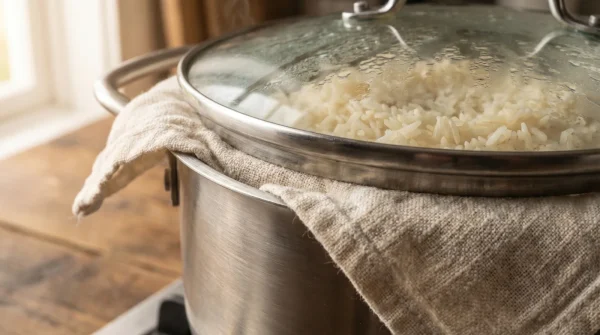 - Lägg en kökshandduk över ditt kokta ris för extrem fluffighet
