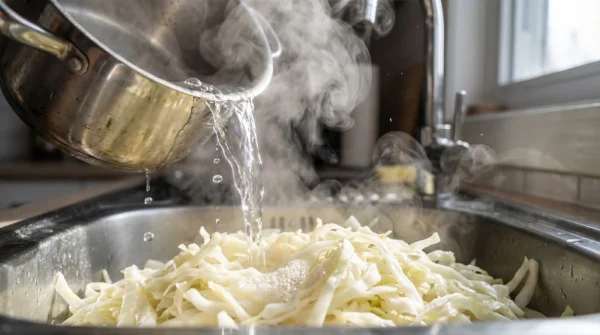 Tyvärr förlorar vattnet sin bindande struktur när det kallnar och värms upp igen. Det måste alltid användas färskt och hett direkt från kastrullen.Vad gör jag om jag av misstag råkade hälla av allt vatten i vasken?