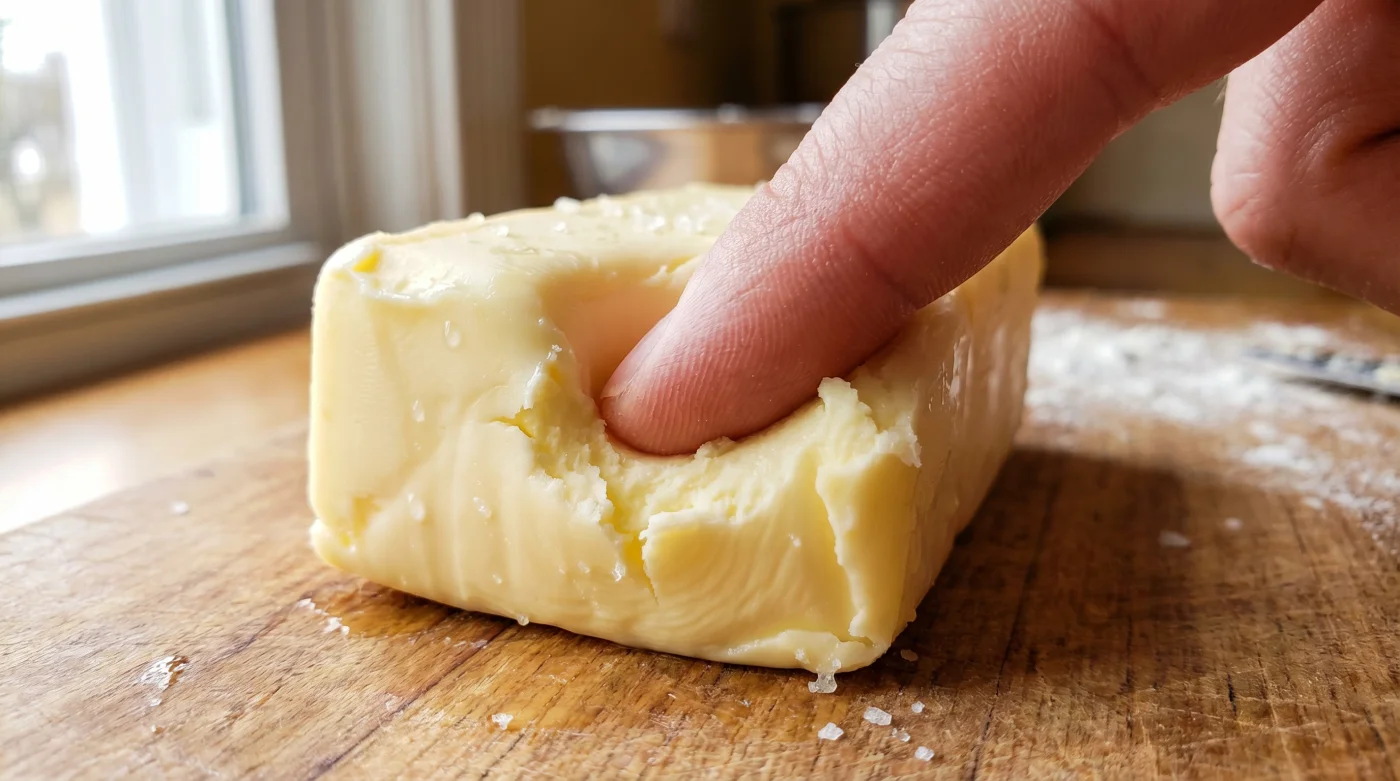 - Testa med fingret: Ett lätt tryck ska lämna en tydlig grop i smöret, men ditt finger ska förbli rent och fritt från kletig olja.