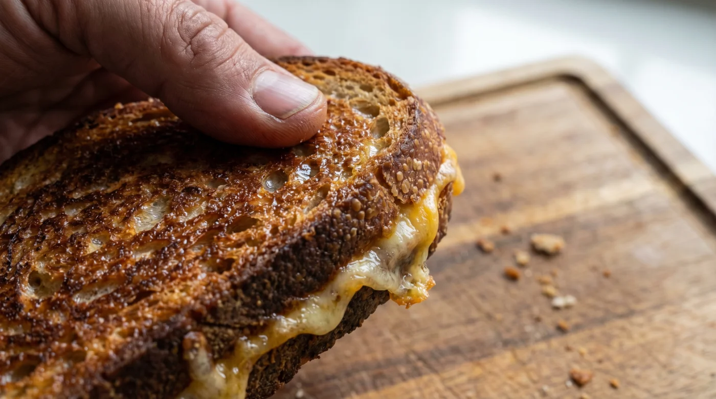 När han lade skivorna i den frustande heta gjutjärnspannan märkte han hur kökets tempo plötsligt lugnade sig. Brödet fick en extremt frasig yta som inte brändes det minsta, osten smälte till seg perfektion, och han behövde inte längre vakta pannorna som en stressad hök. Detta professionella och minimalistiska sidospår med bara en utbytt ingrediens blev snabbt en absolut standard i hans kök – en hemlighet för restaurangresultat som kräver noll extra ansträngning av kocken.