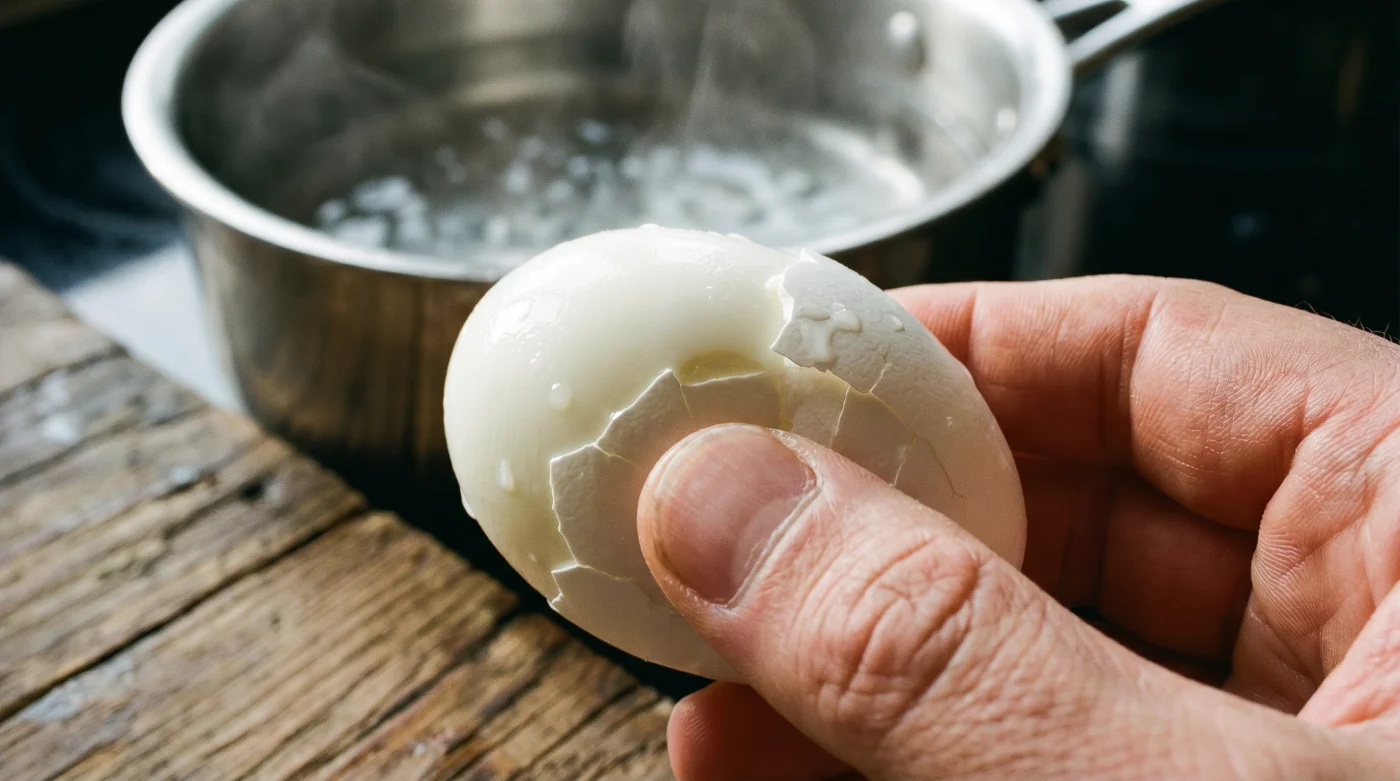 Men så kommer ögonblicket som kan förstöra den mest harmoniska morgon. Du knackar det kokta ägget mot diskbänken, börjar pilla med naglarna, och skalet vägrar släppa taget. Istället för en slät, perfekt vit oval drar du med dig halva äggvitan. Kvar i din hand ligger en trasig, kraterliknande klump som ser ut att ha överlevt ett mindre krig.