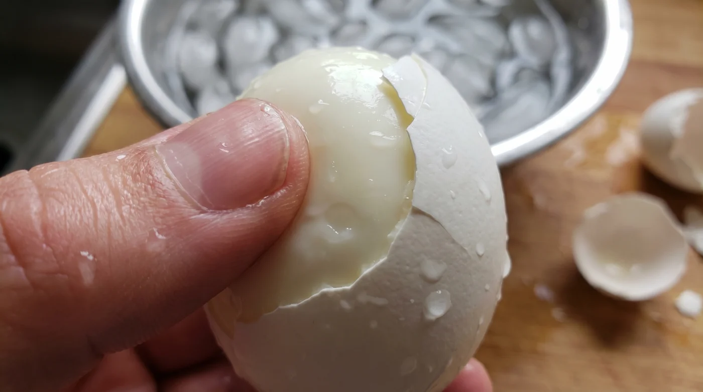 | Termisk chock | Använd riktig is, inte bara kallt kranvatten. | Tvingar äggvitan att krympa blixtsnabbt, vilket skapar utrymmet som behövs för lätt skalning. |