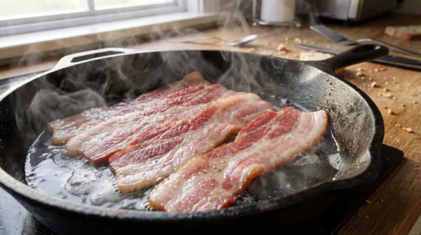 - Stekt bacon kräver lite vatten för den absolut mest krispiga ytan.